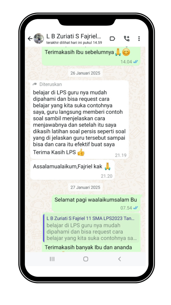Klik untuk Tanya ProgramLPS Education dapat menjadi pilihan terbaik bagi siswa untuk mendapatkan dukungan belajar agar sukses masuk PTN Favorit. Untuk informasi lebih lengkap, silakan hubungi :